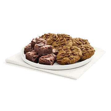 A big portion for a large company! A wide range of cookies including chocolate chip cookies and brownies. You can choose different variants depending on the size of your group.